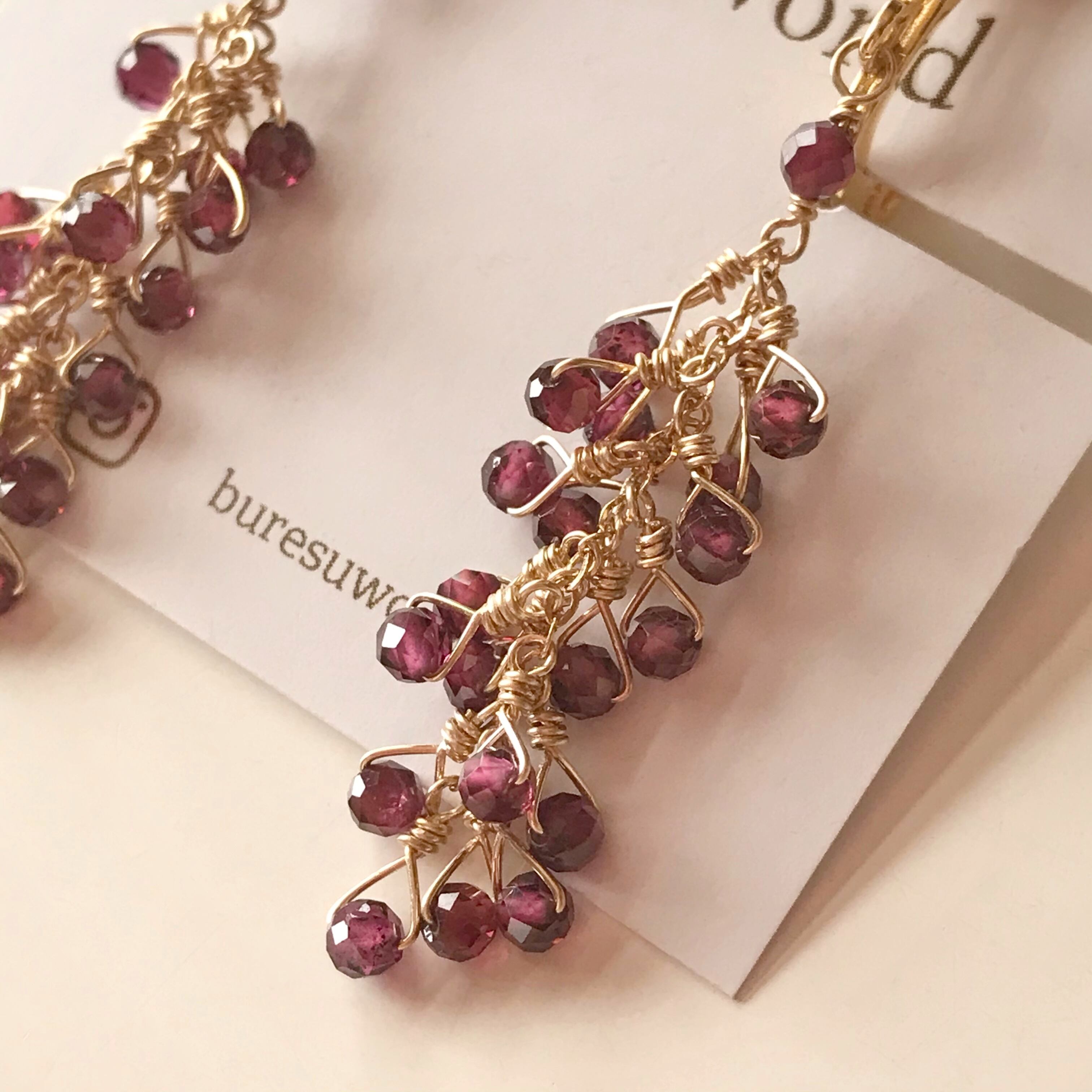 小粒ロードライトガーネットのイヤリング。