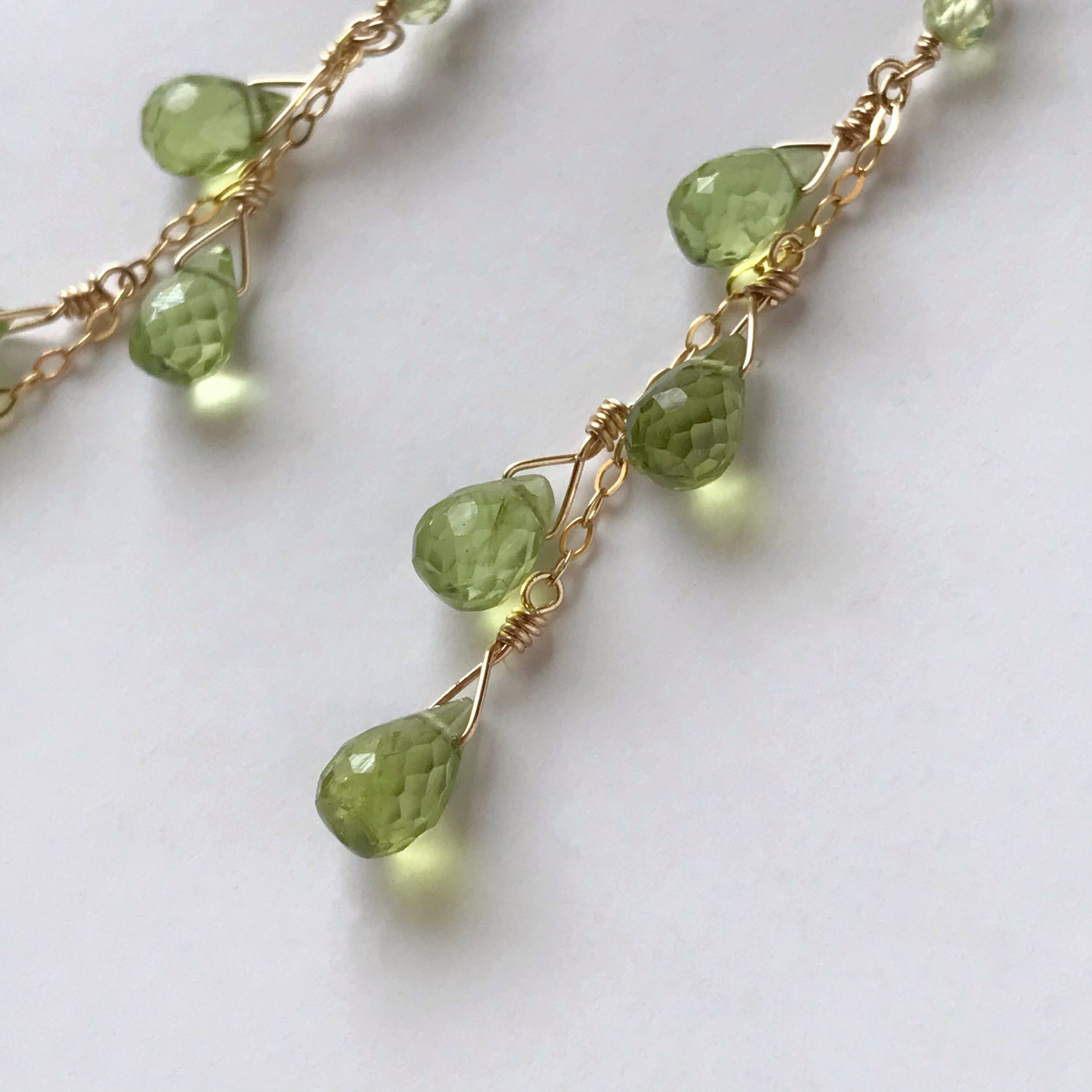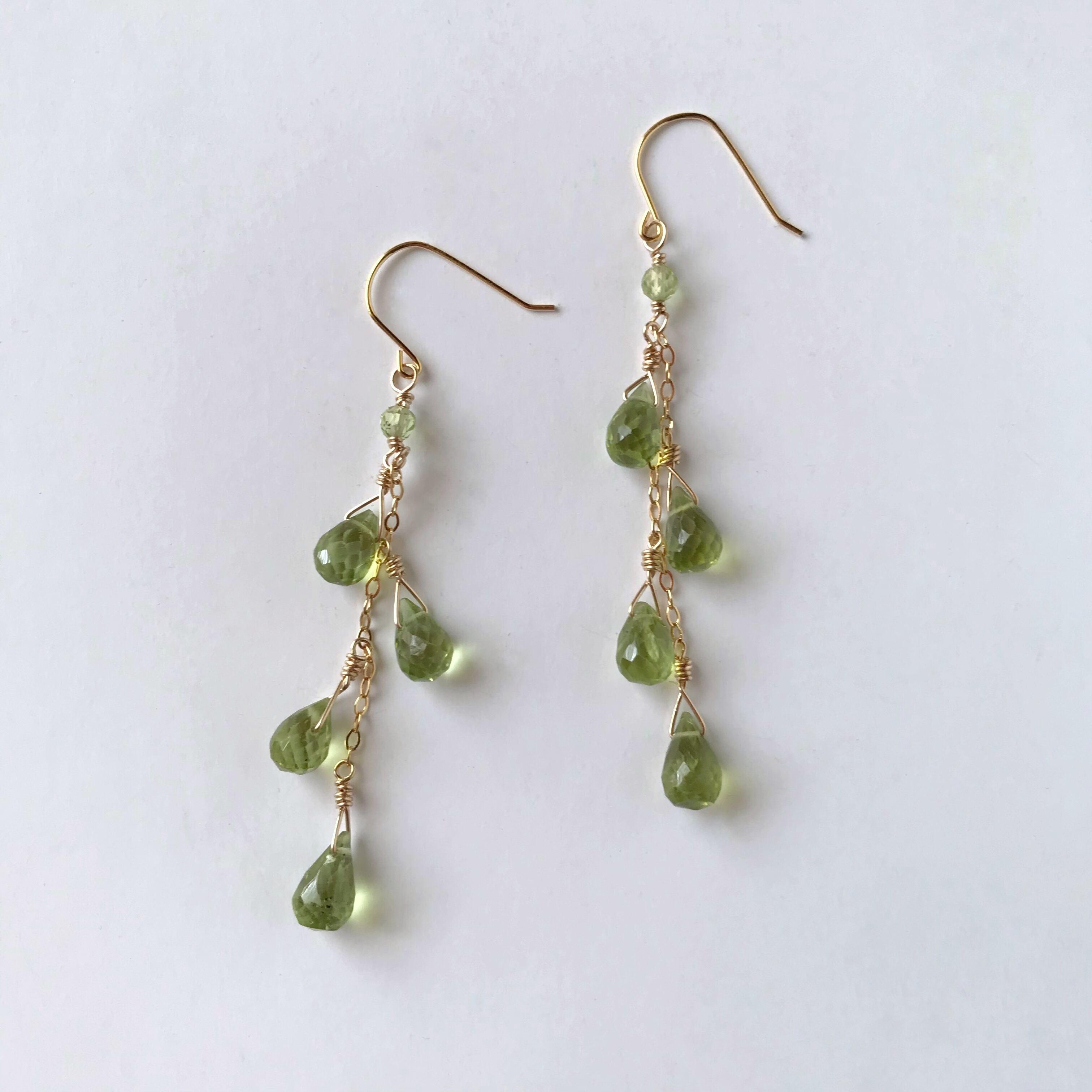 カットの入ったドロップタイプのペリドットは光を受けて、とてもきれいに耳元を彩ります。