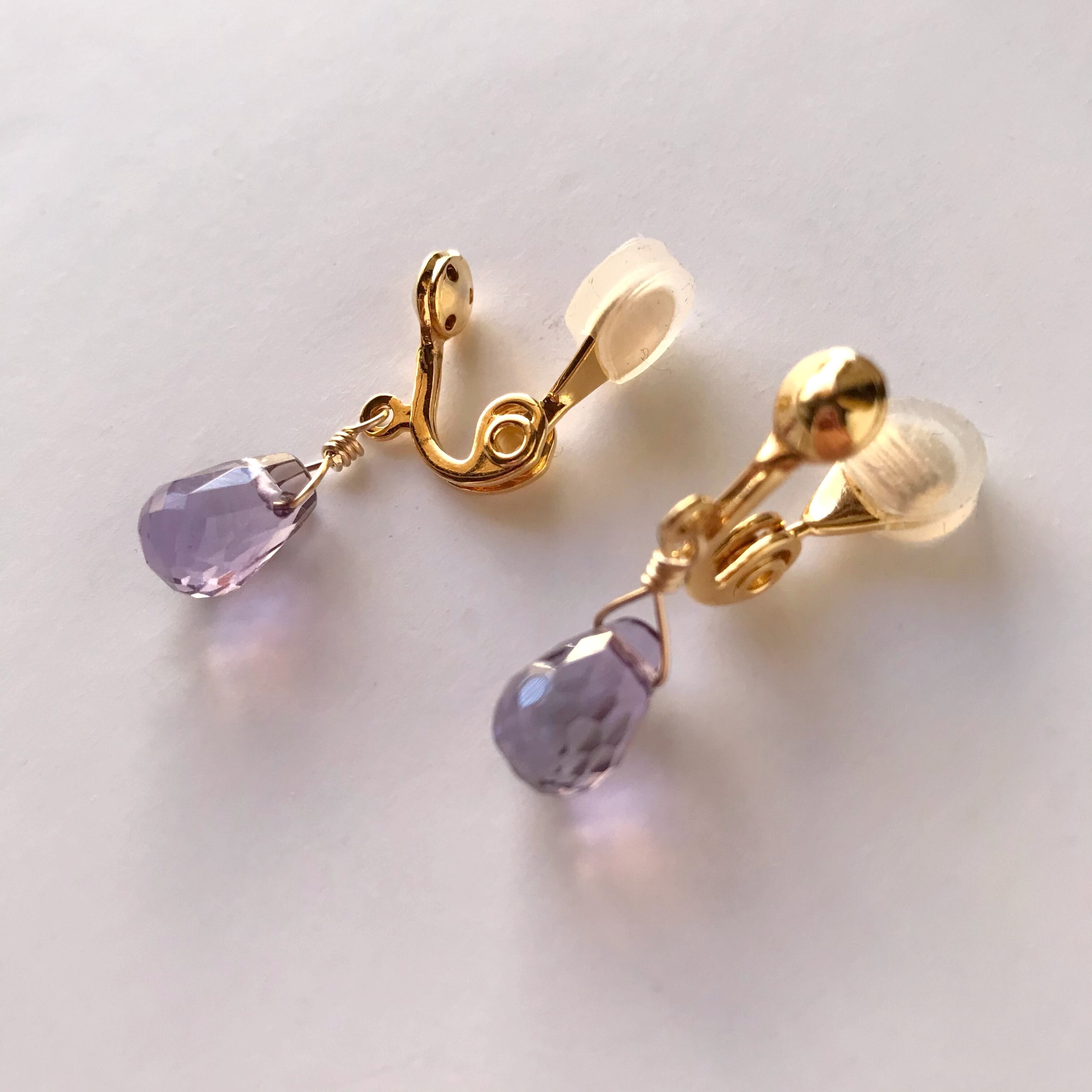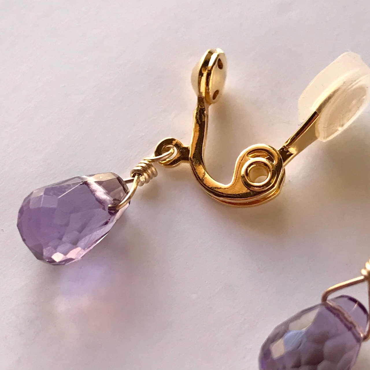 アメジストのドロップカットイヤリング*痛くなりにくいイヤリング