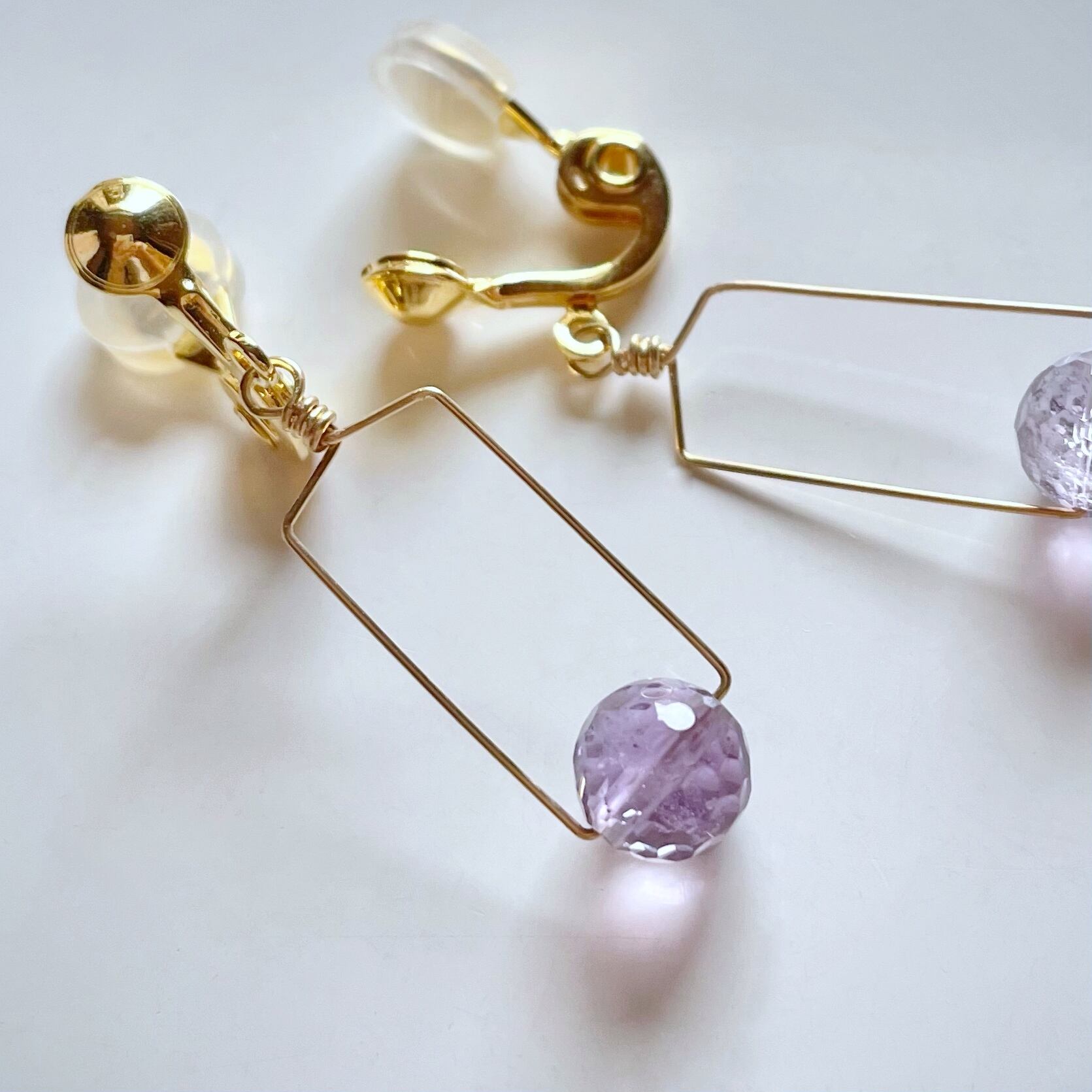 カットアメジストのイヤリング。