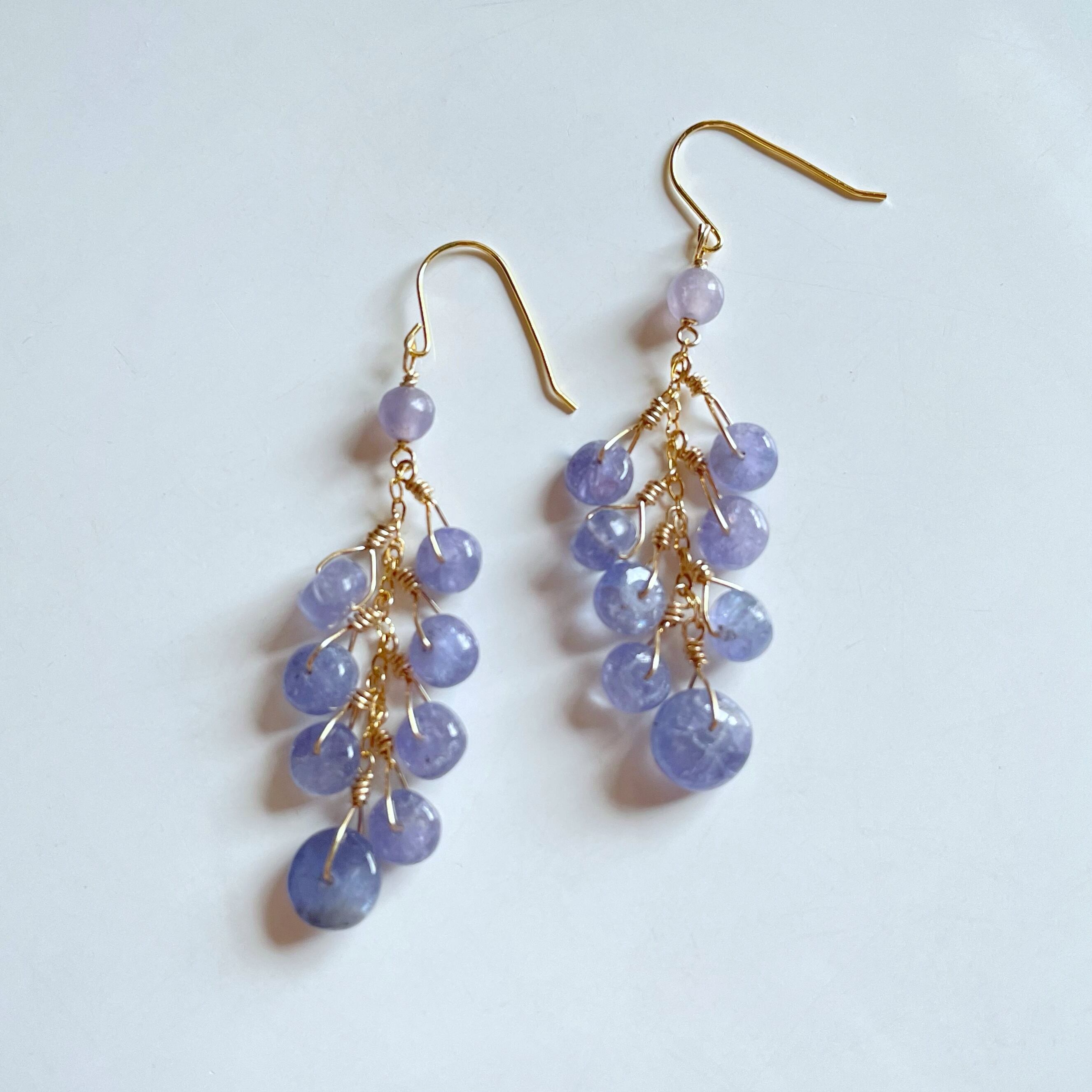 小さな粒のタンザナイト(ゾイサイト)は、冬のイルミネーションを思わせるあたたかな美しい青紫色です。